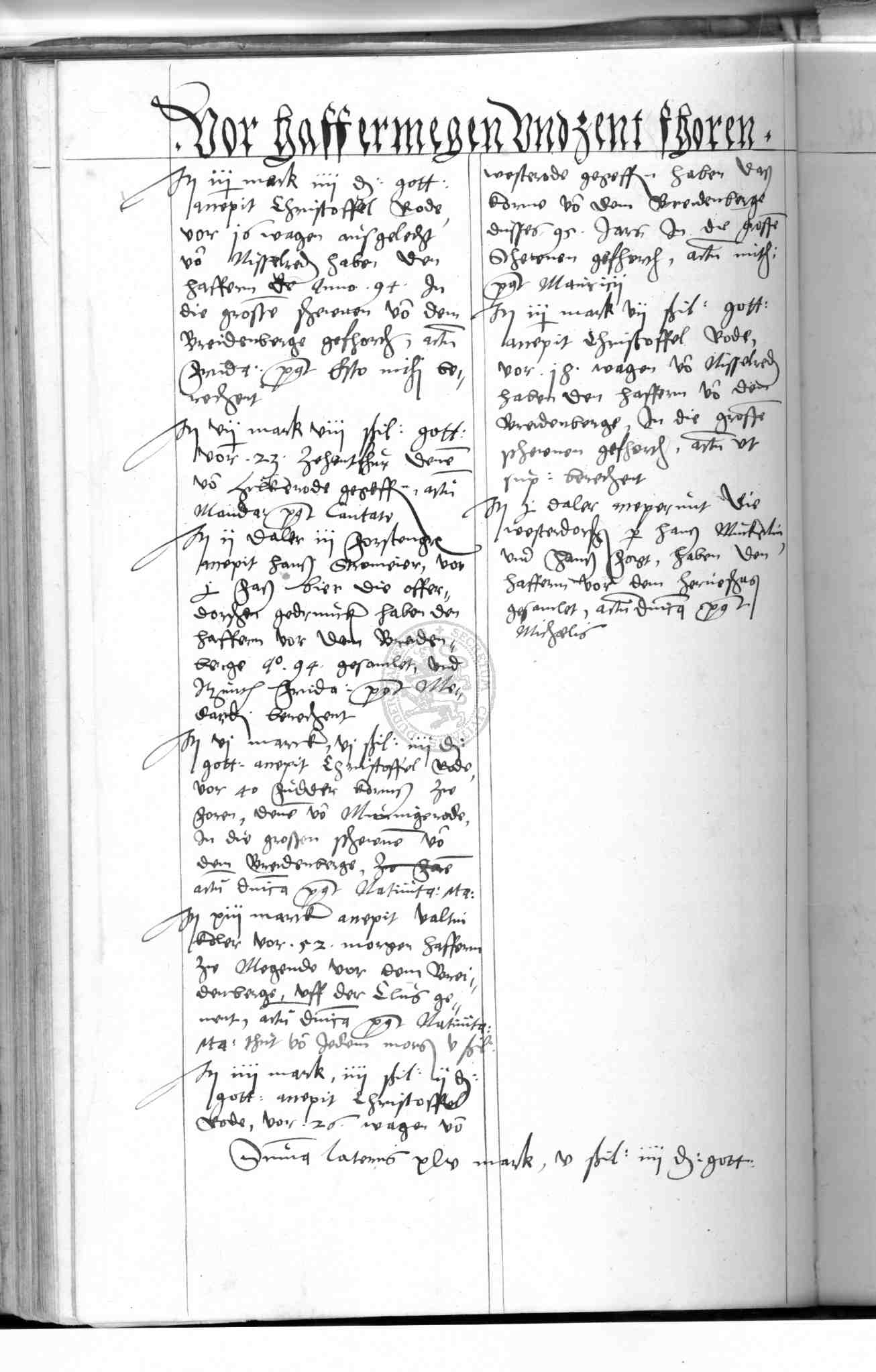 | Rubrum: | vor haffermegen und zent fhoren |