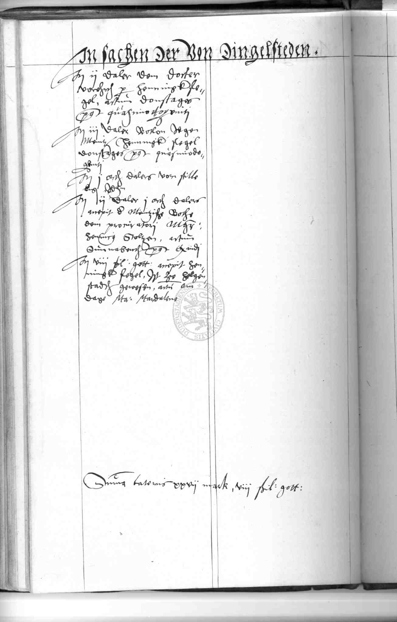 | Rubrum: | in sachen der von Dingelsteden |