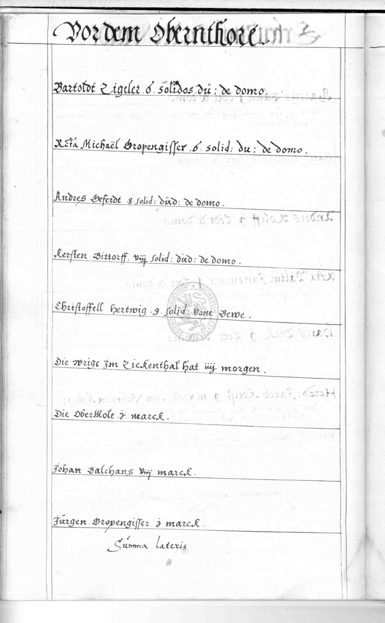 | Rubrum: | [Erbenzinse] vor dem Obernthore |