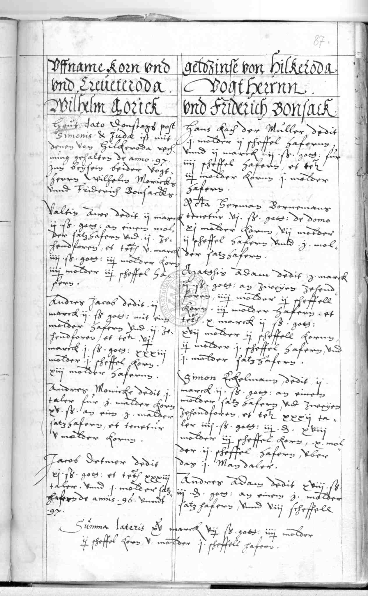 | Rubrum: | uffname korn und geldzinse von Hilkeroda und Creveteroda |