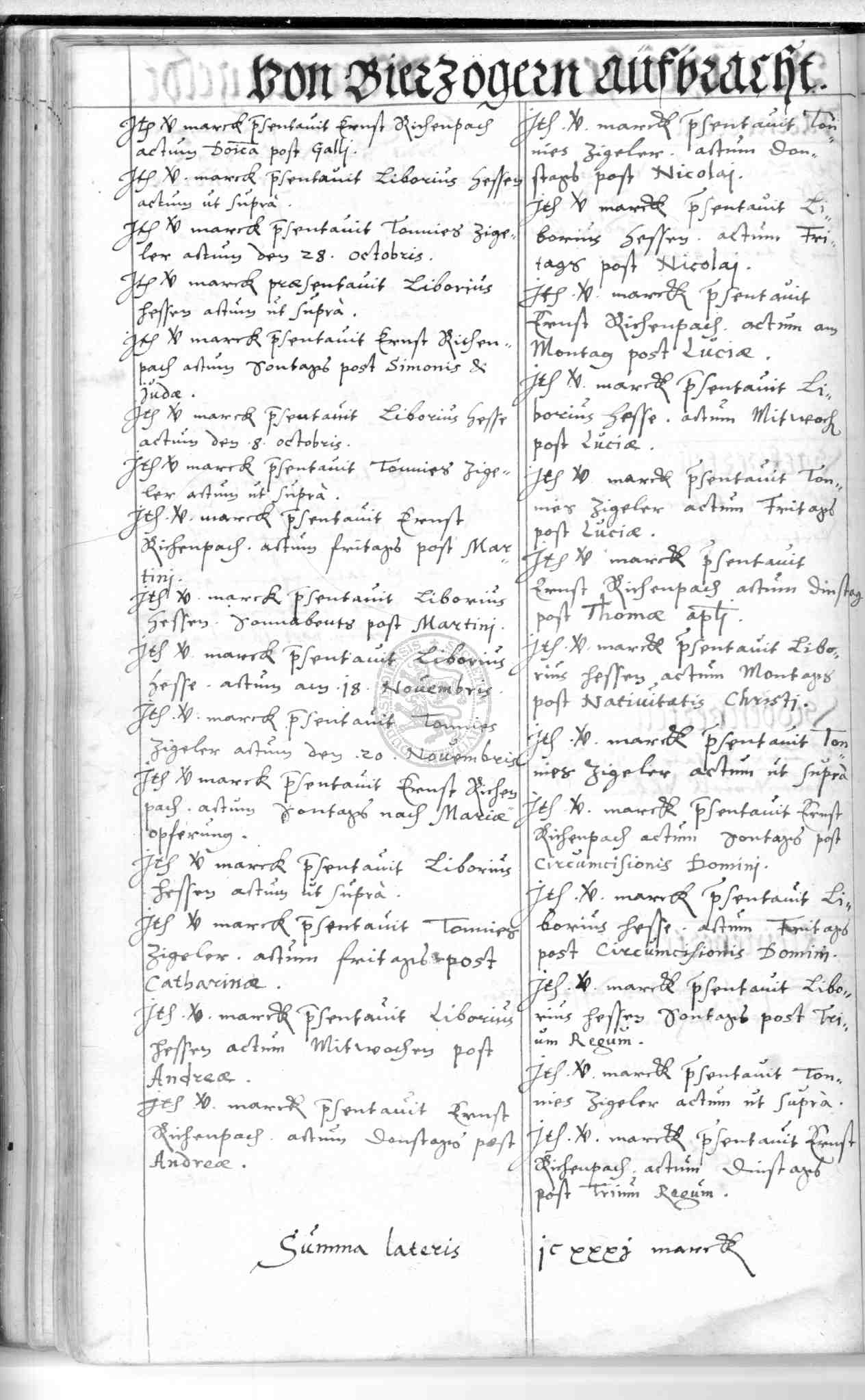 | Rubrum: | von bierzogern uffbracht |