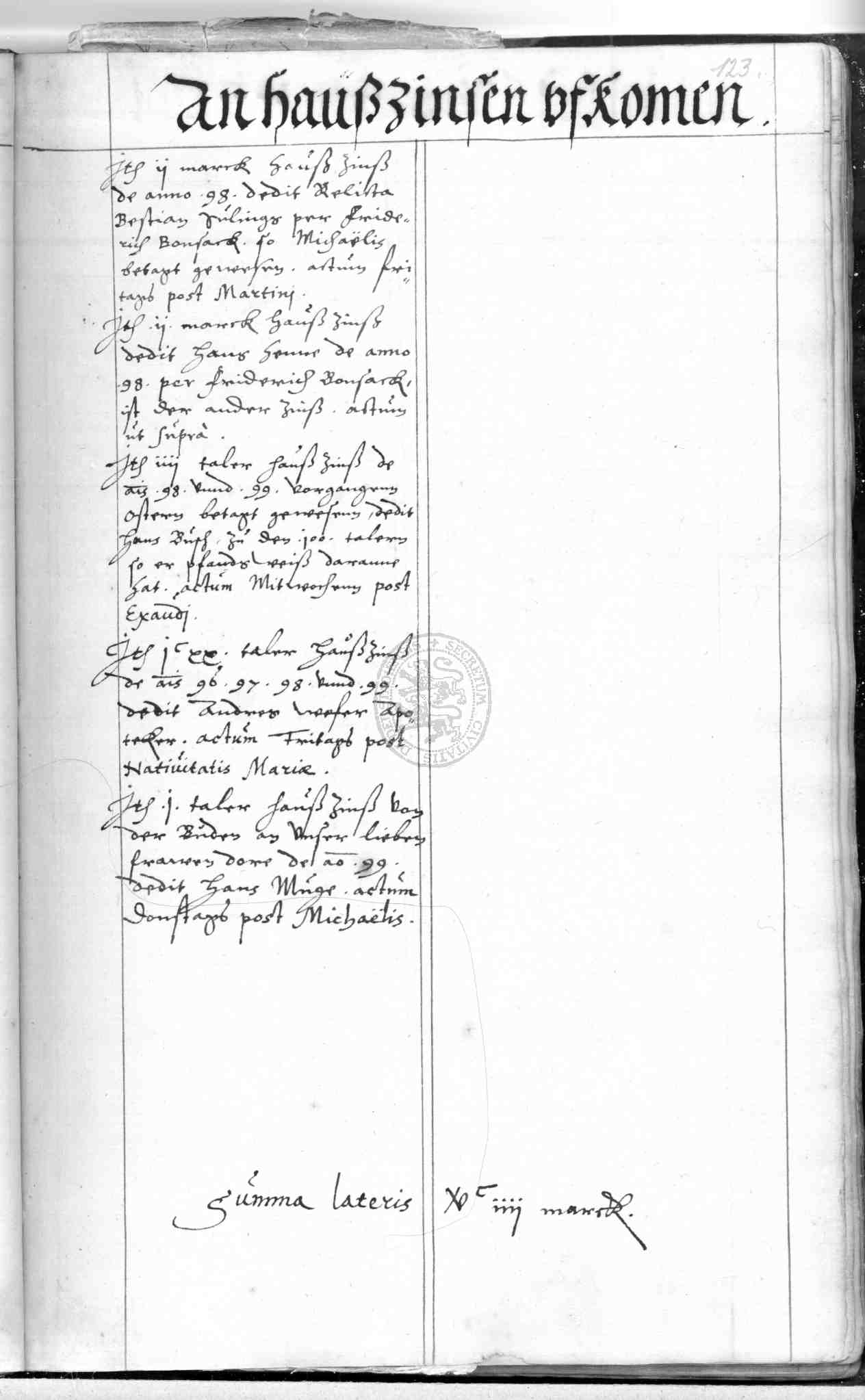 | Rubrum: | an hauszinsen ufkomen |