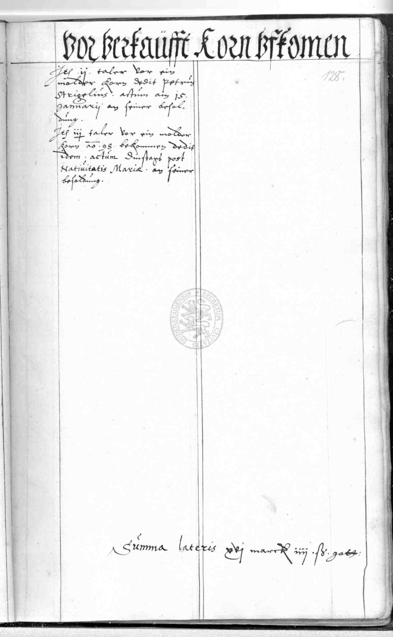 | Rubrum: | vor verkaufft korn ufkomen |