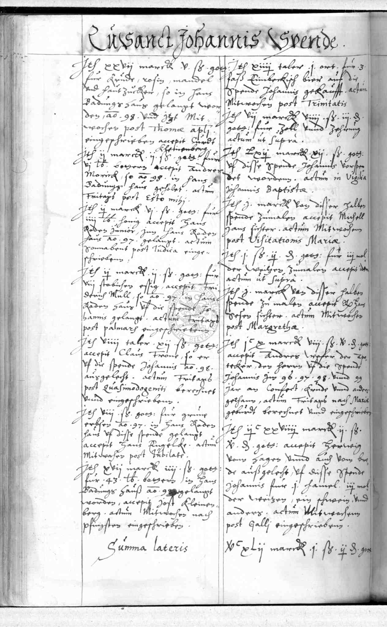 | Rubrum: | zu Sanct Johannis spende |