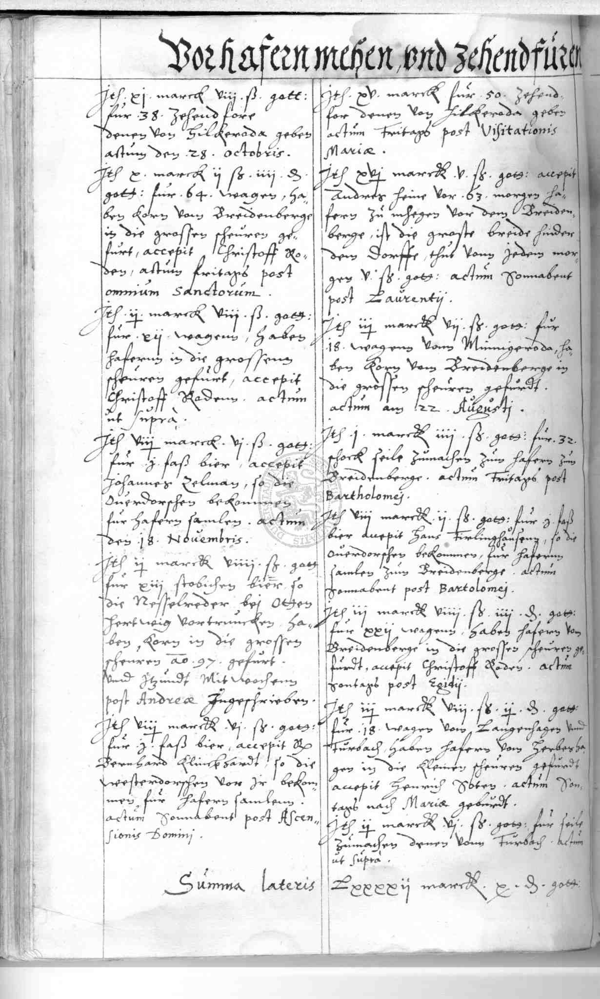 | Rubrum: | vor hafernmehen und zehendfuren |