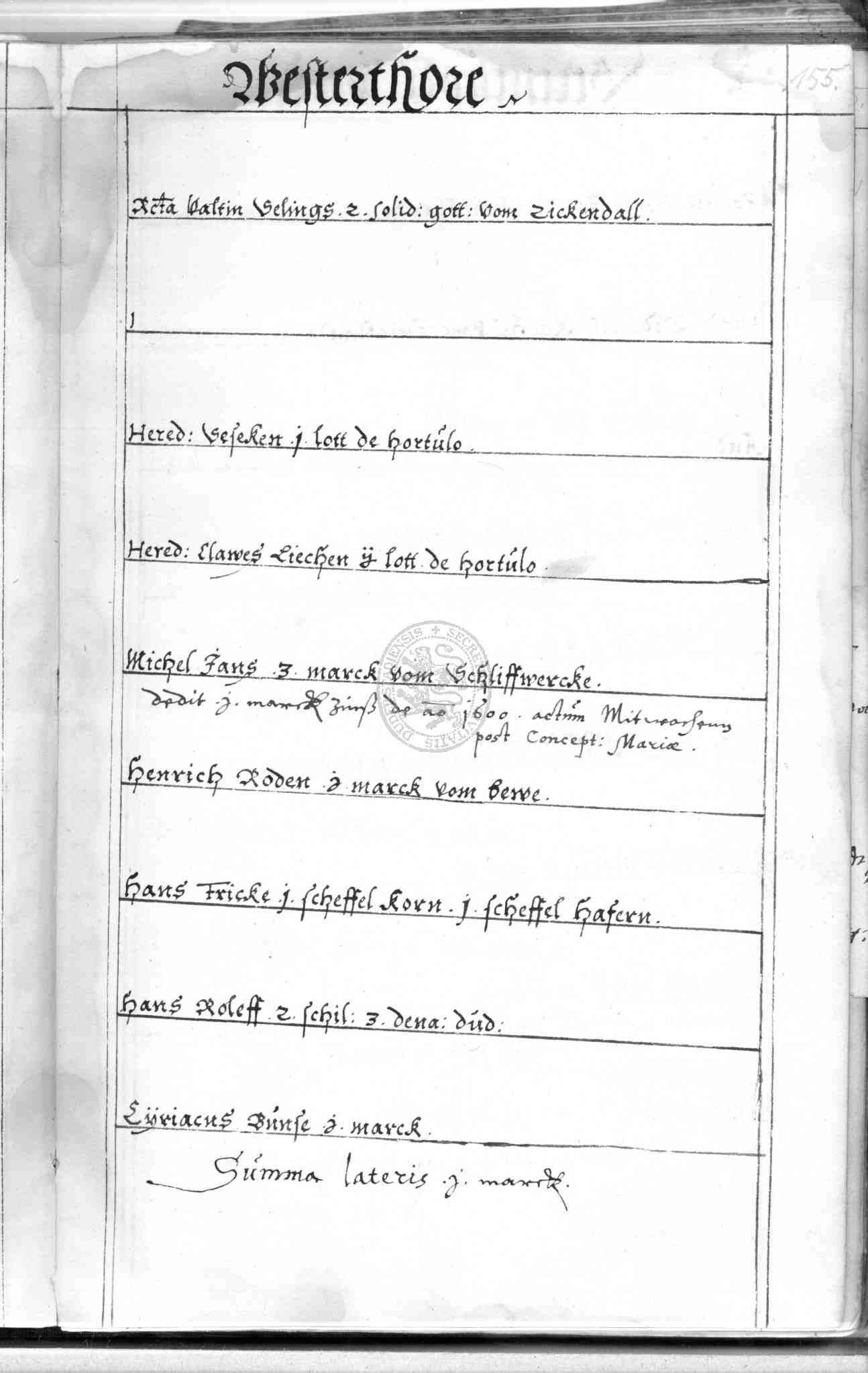 | Rubrum: | [erbenzinse] vor dem Steinthore und Westerthore |