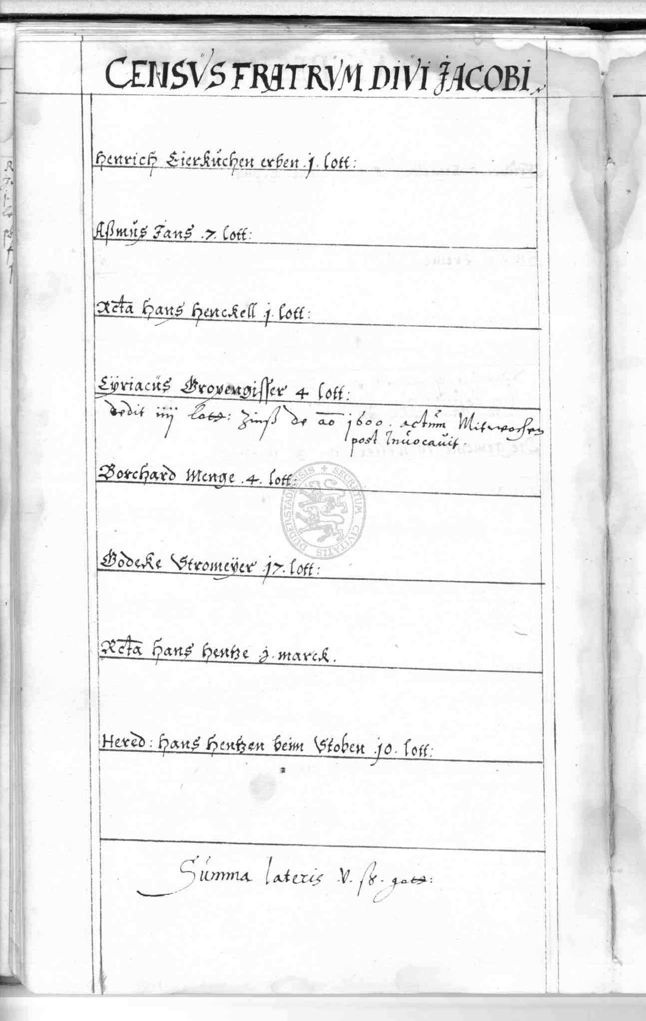 | Rubrum: | census fratrum divi Jacobi |