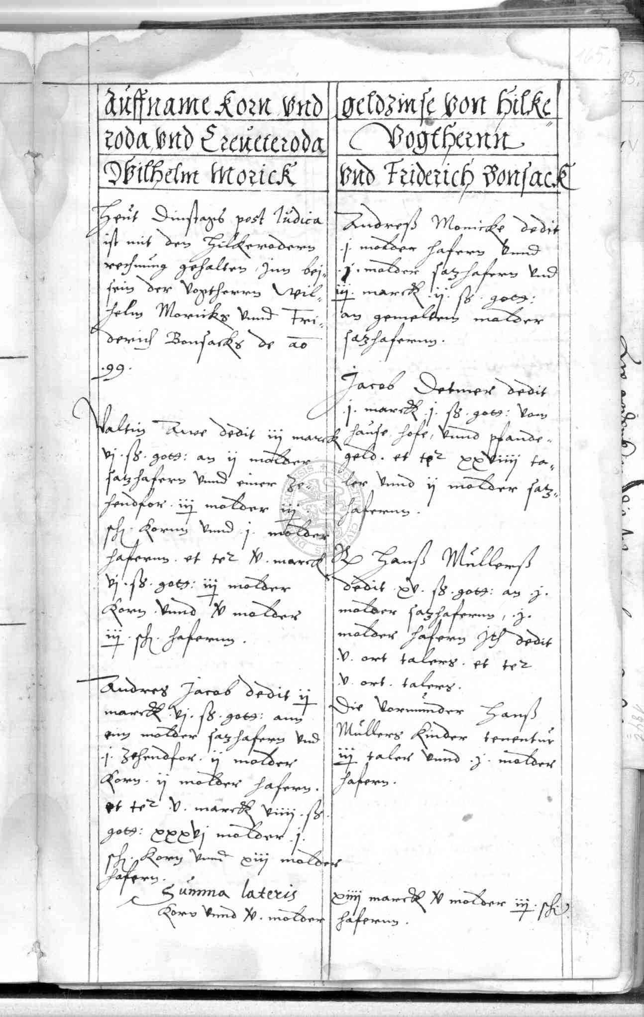 | Rubrum: | auffname korn und geldtinse von Hilkeroda und Creveteroda |