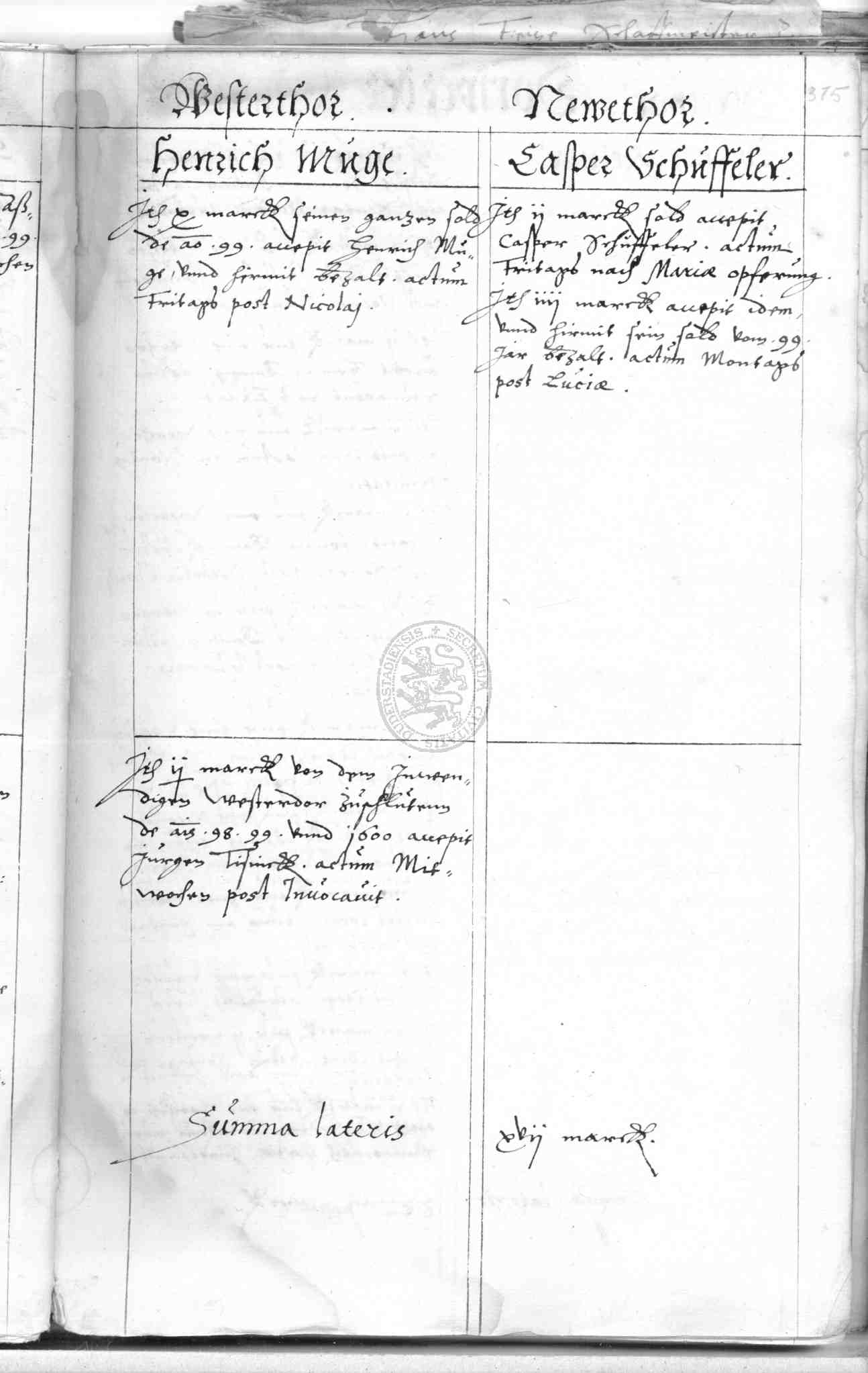 | Subrubrum: | [Torwärter] westerthor |