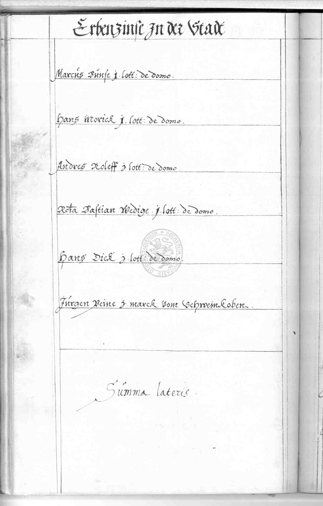 | Rubrum: | Erbenzinse in der stadt |