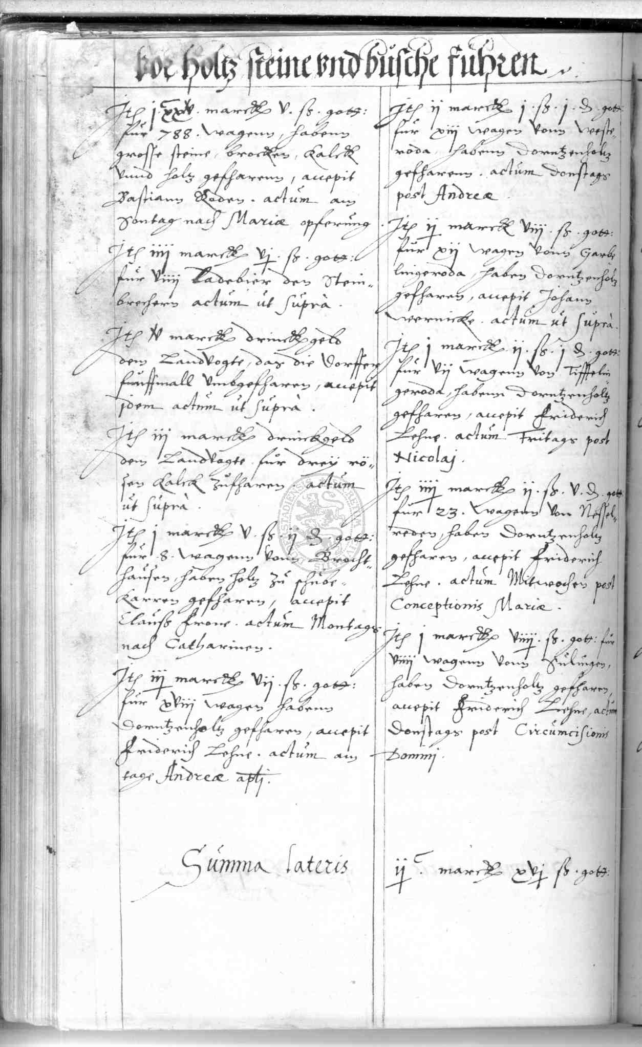 | Rubrum: | vor holtz, steine und busche fuhren |