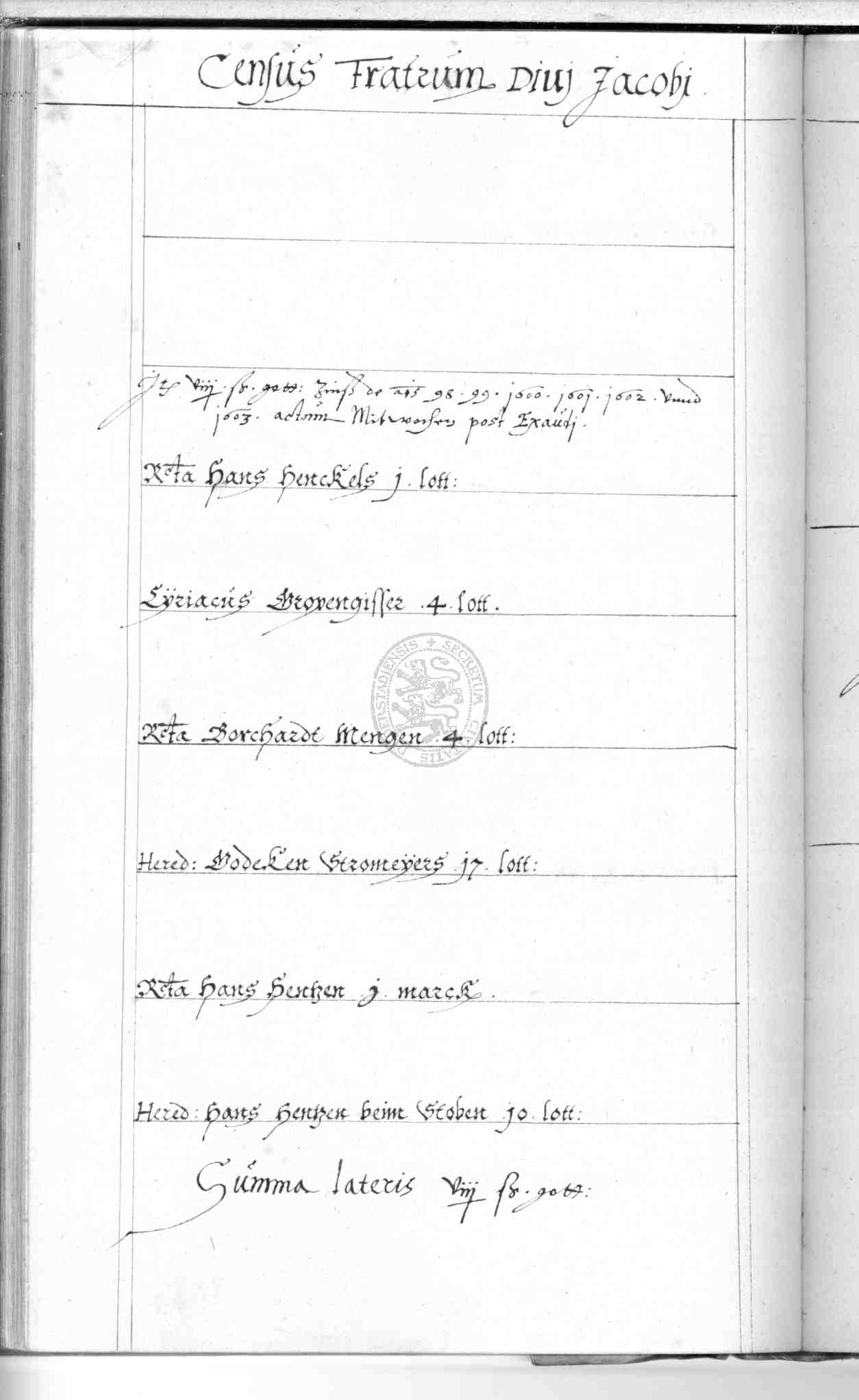 | Rubrum: | census fratrum divi Jacobi |