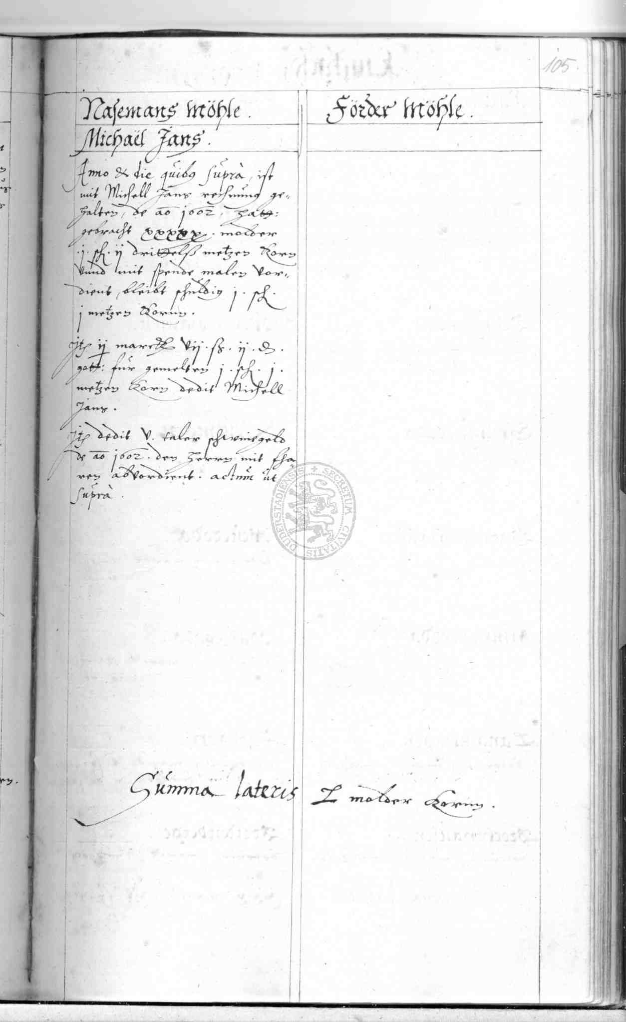 | Subrubrum: | förder möhle |