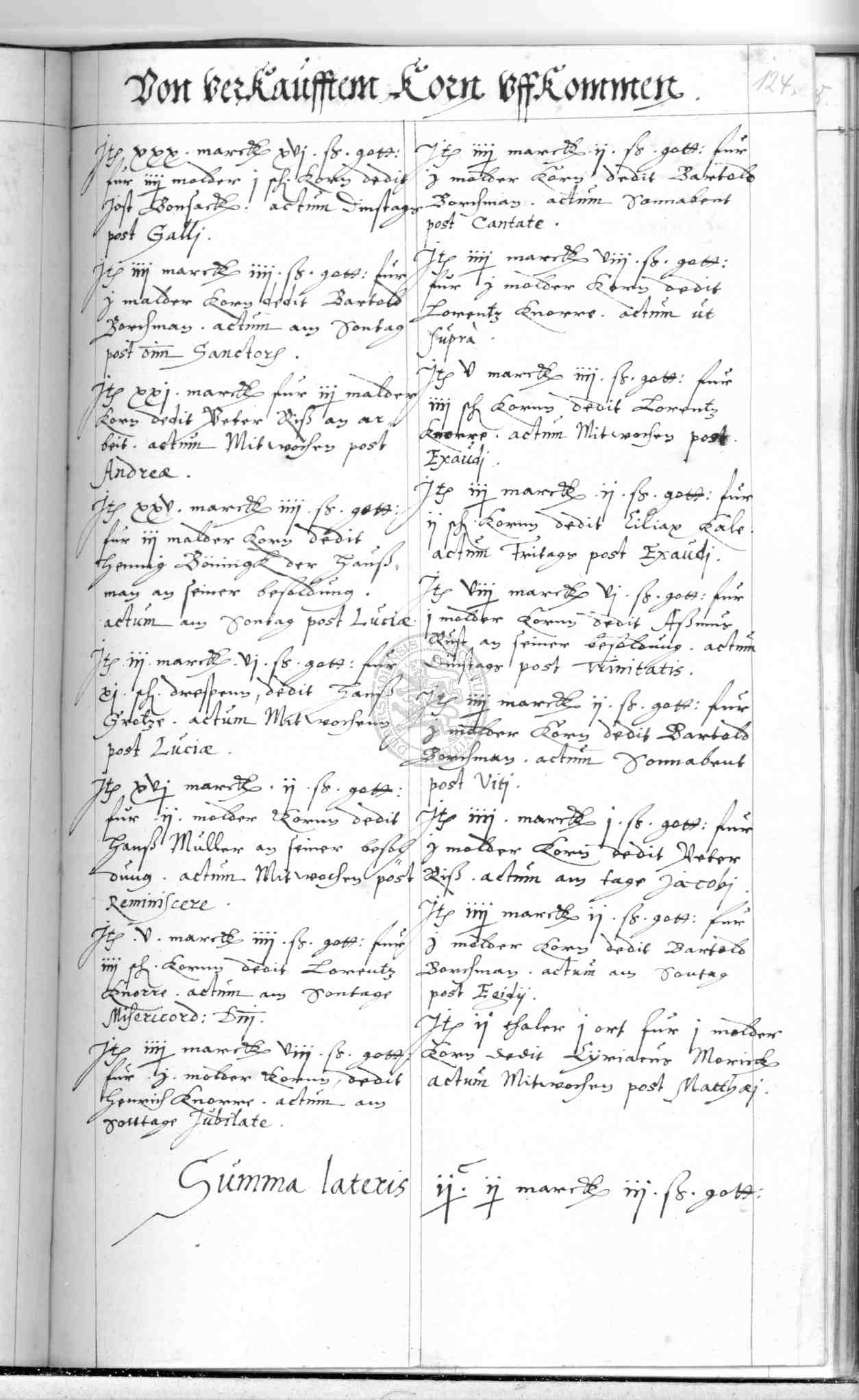 | Rubrum: | von verkaufftem korn uffkommen |