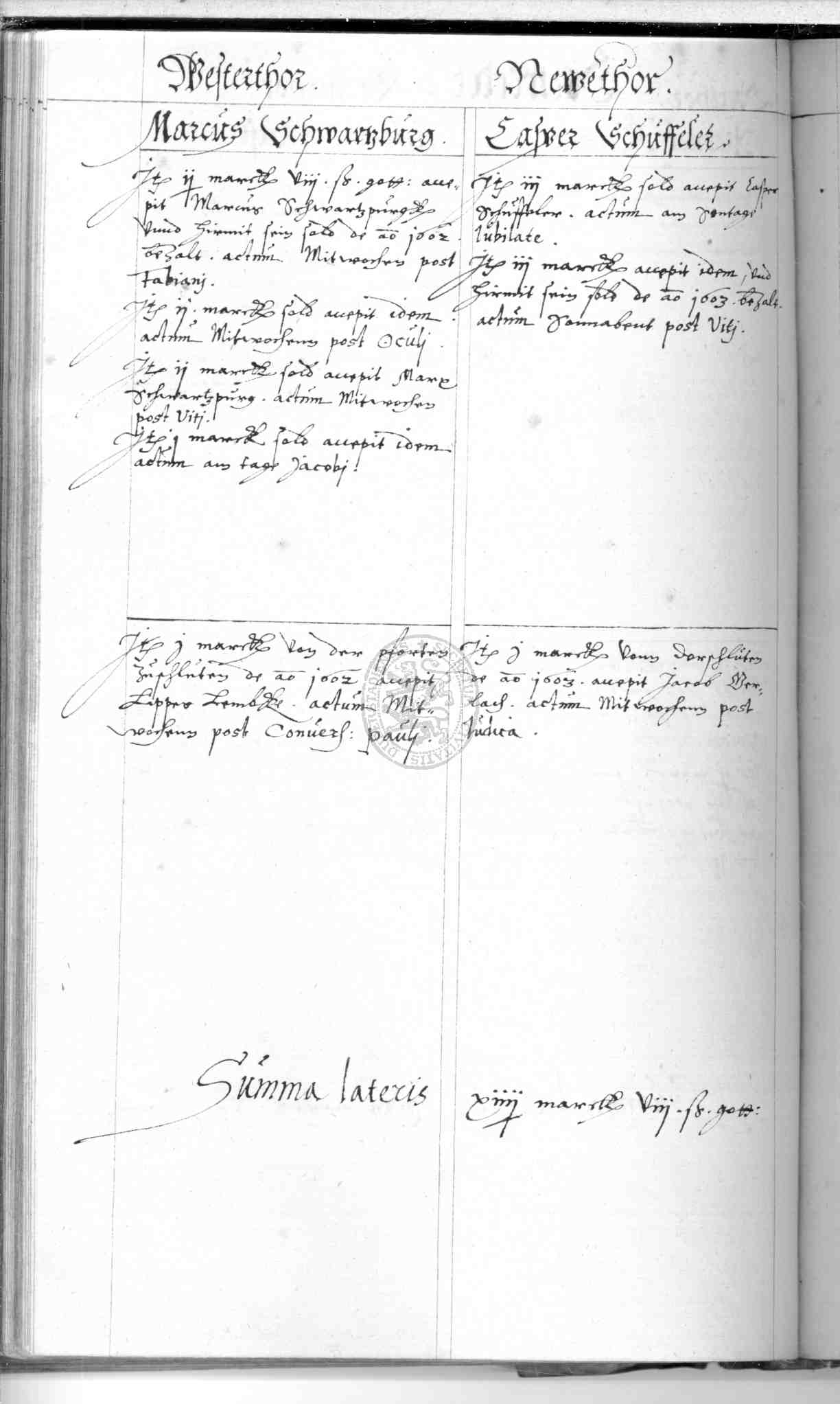 | Subrubrum: | [Torwärter] westerthor |
