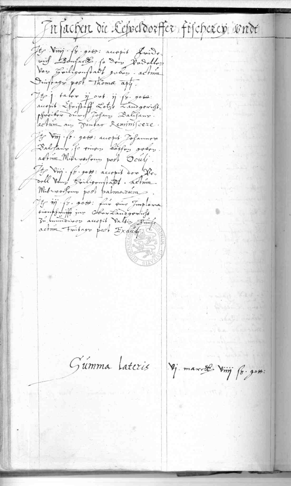 | Rubrum: | in sachen die kespeldorffer fischerey unde dritten pfennig belangendt |