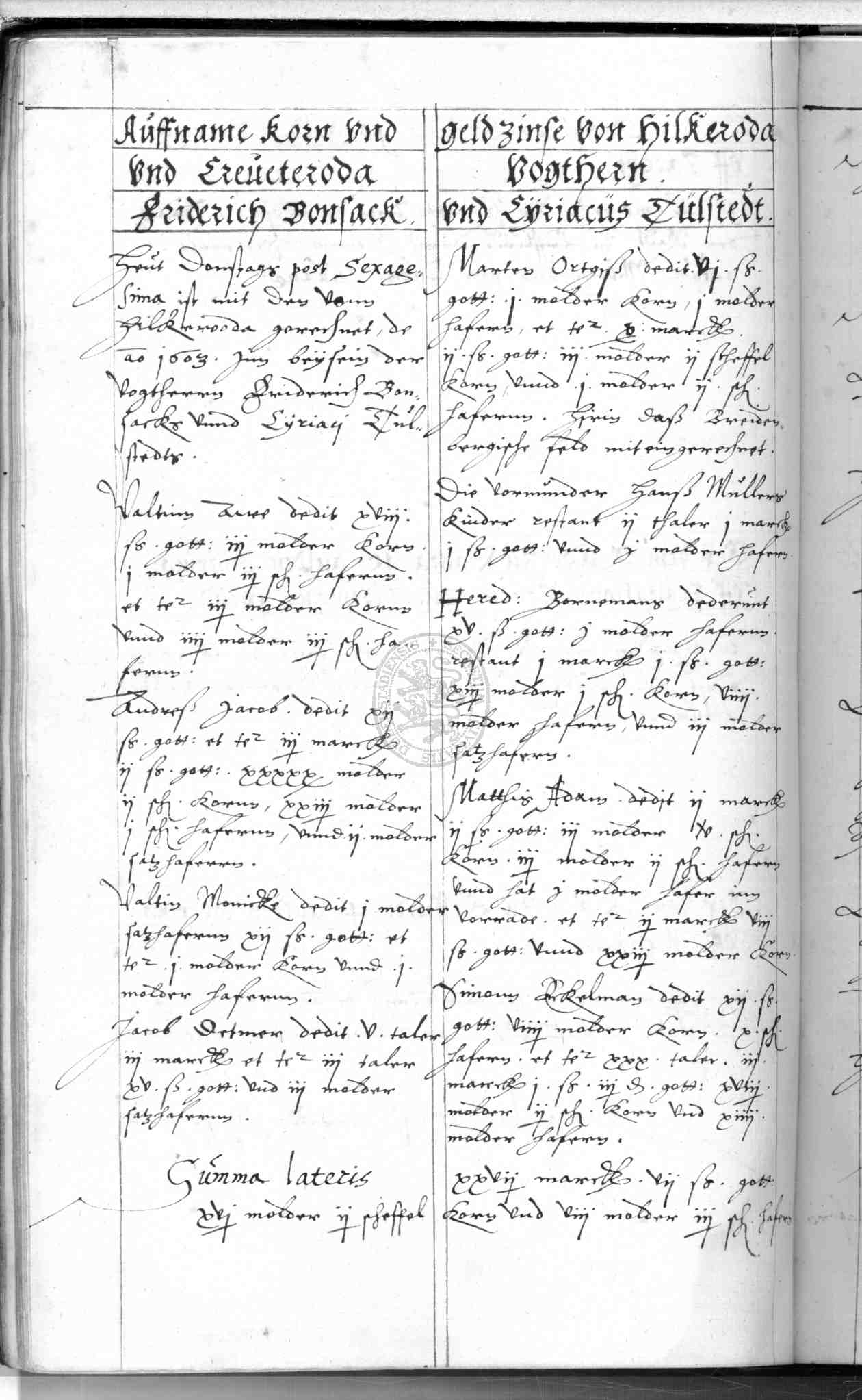 | Rubrum: | auffname korn und geldzinse von Hilkeroda und Creveteroda |