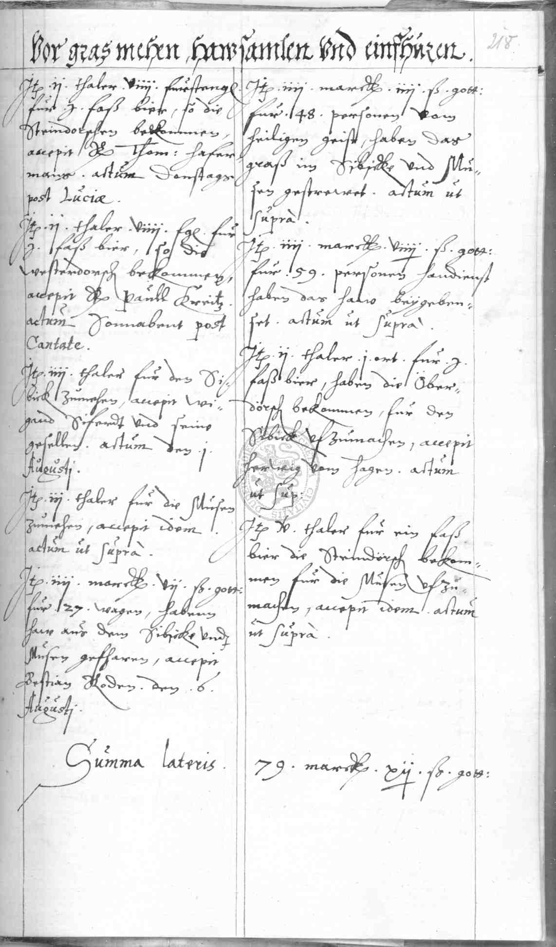 | Rubrum: | vor gras mehen, hausamlen und einfhuren |