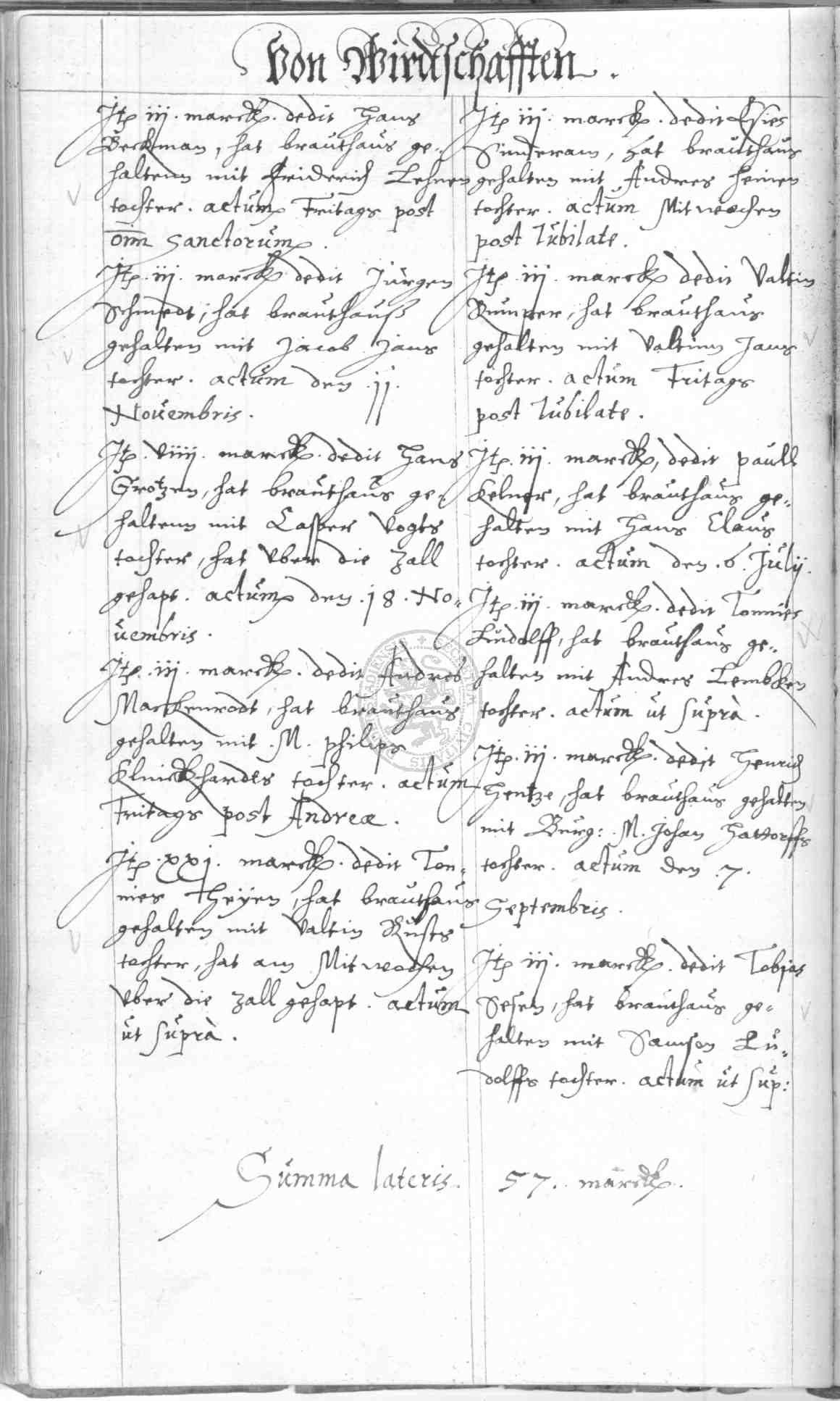 | Rubrum: | von wirdtschafften |