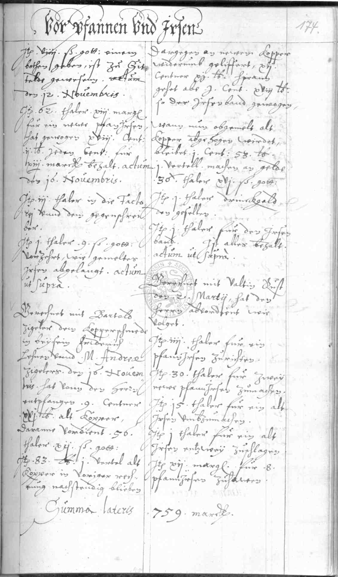 | Rubrum: | vor pfannen und irsen |