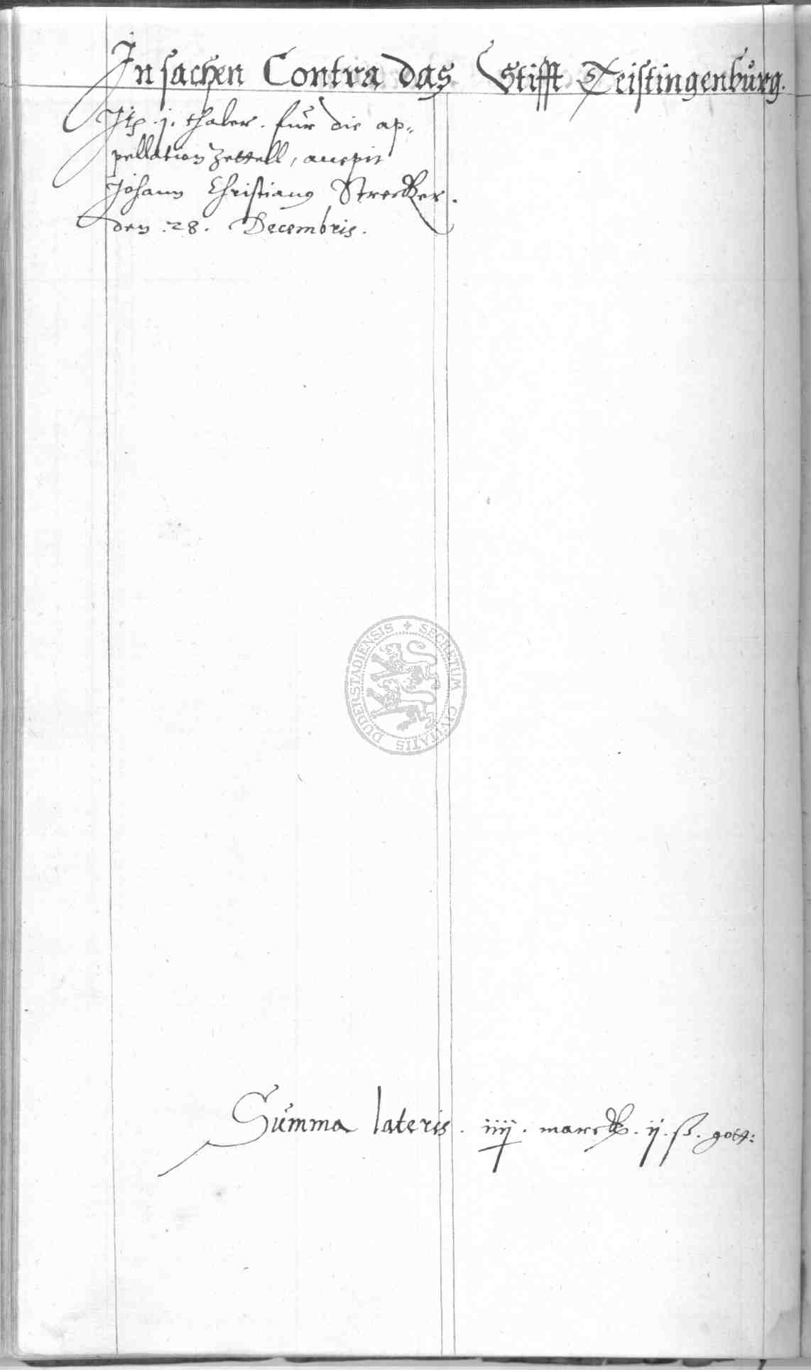| Rubrum: | in sachen contra das stifft Teistingenburg |