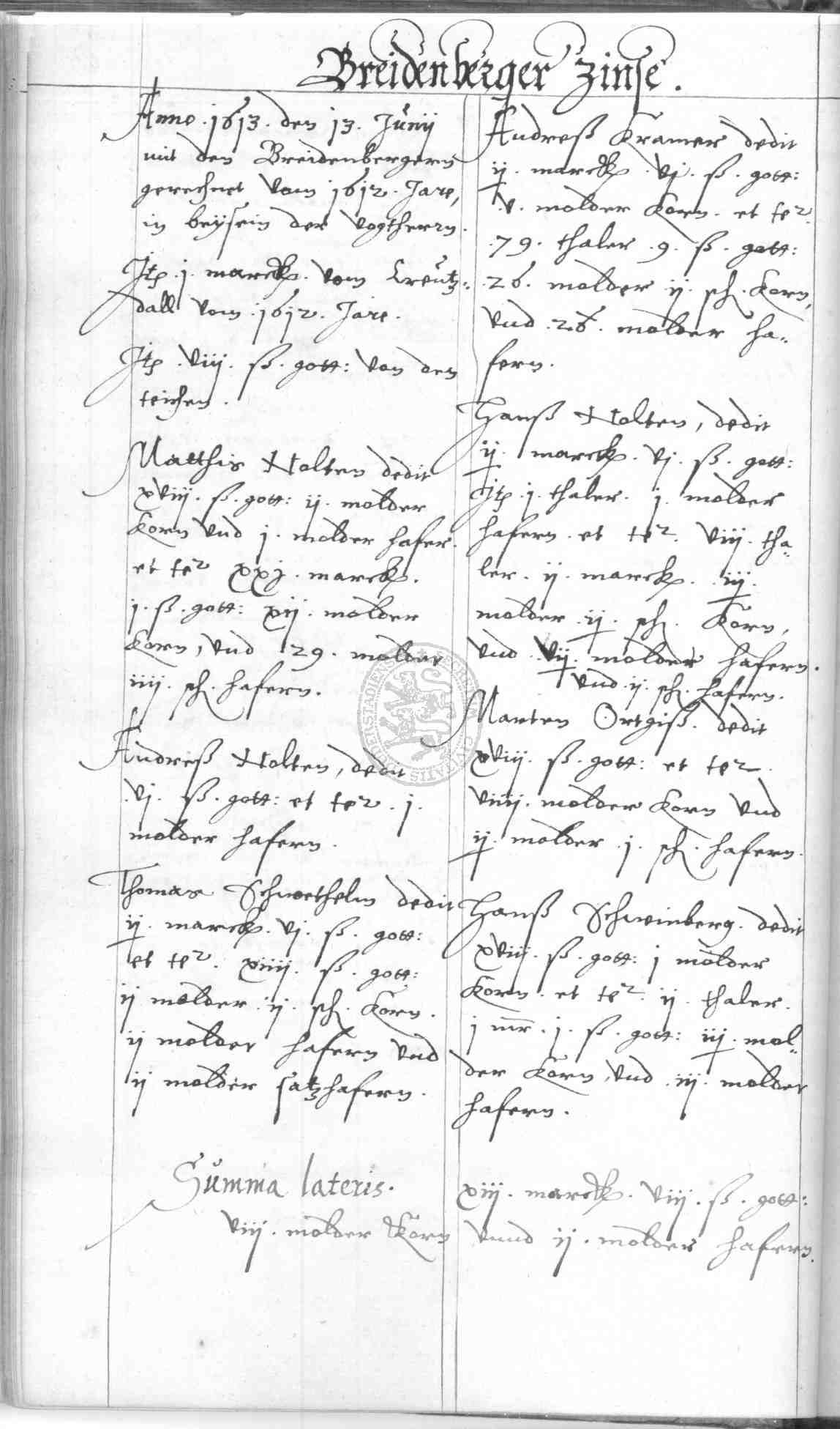 | Rubrum: | Breidenberger zinse |