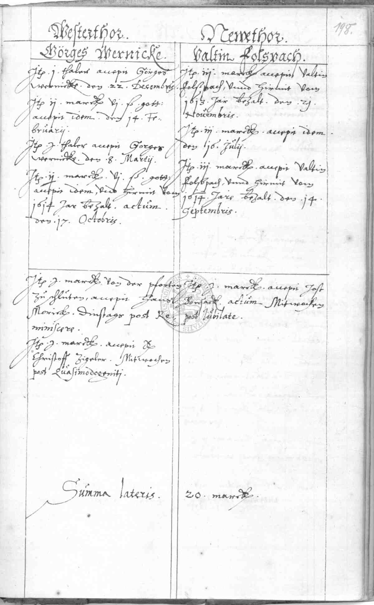 | Subrubrum: | [Torwärter] westerthor |