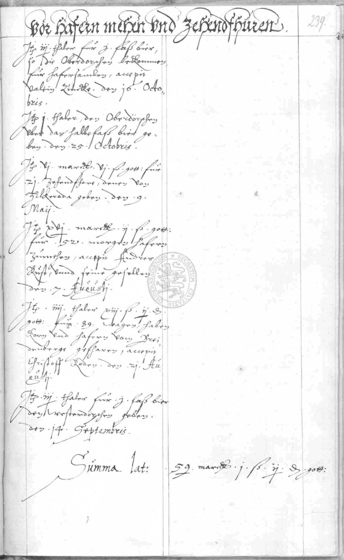 | Rubrum: | vor hafern mehen und zehendfhuren |