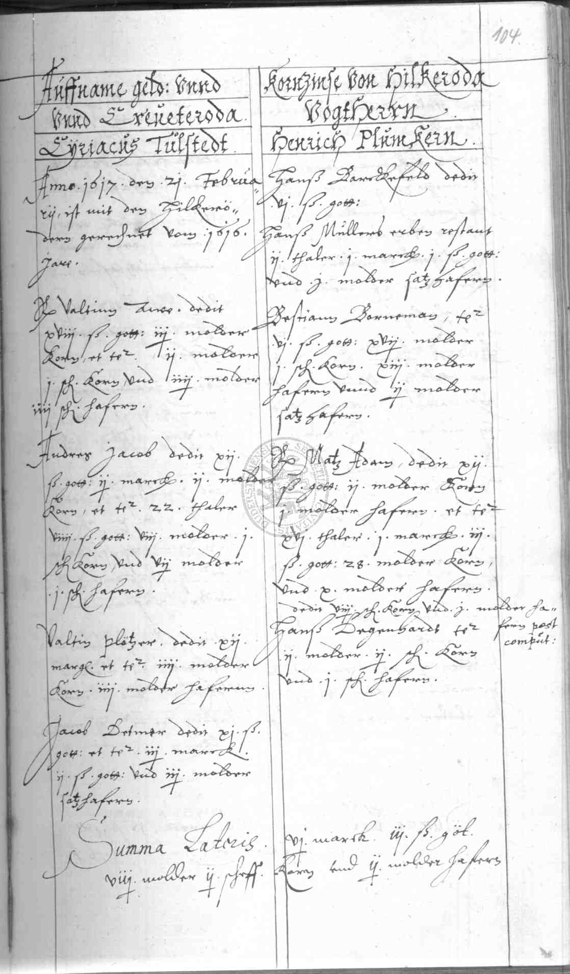 | Rubrum: | auffname geld und kornzinse von Hilkeroda und Creveteroda |