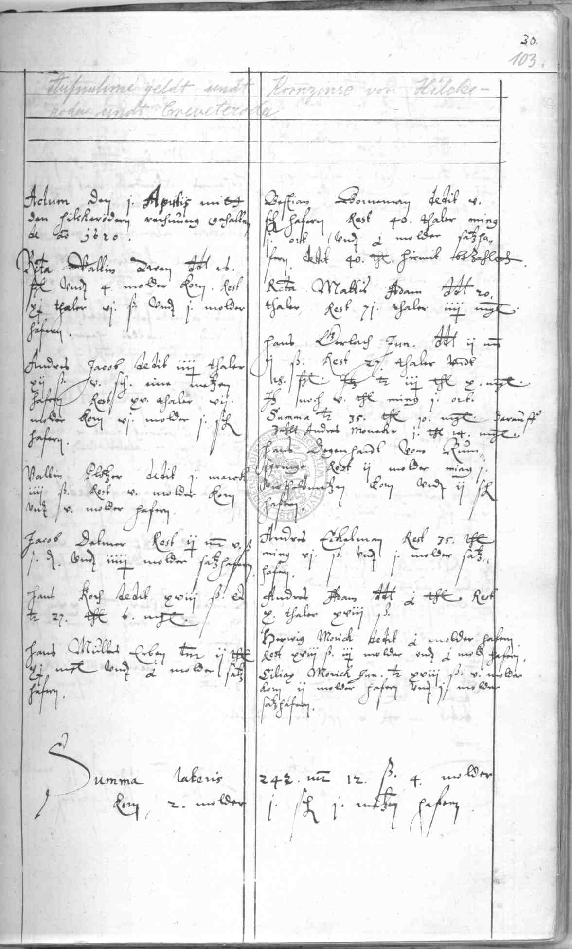 | Rubrum: | [auffname geld und kornzinse von Hilkeroda und Creveteroda] |