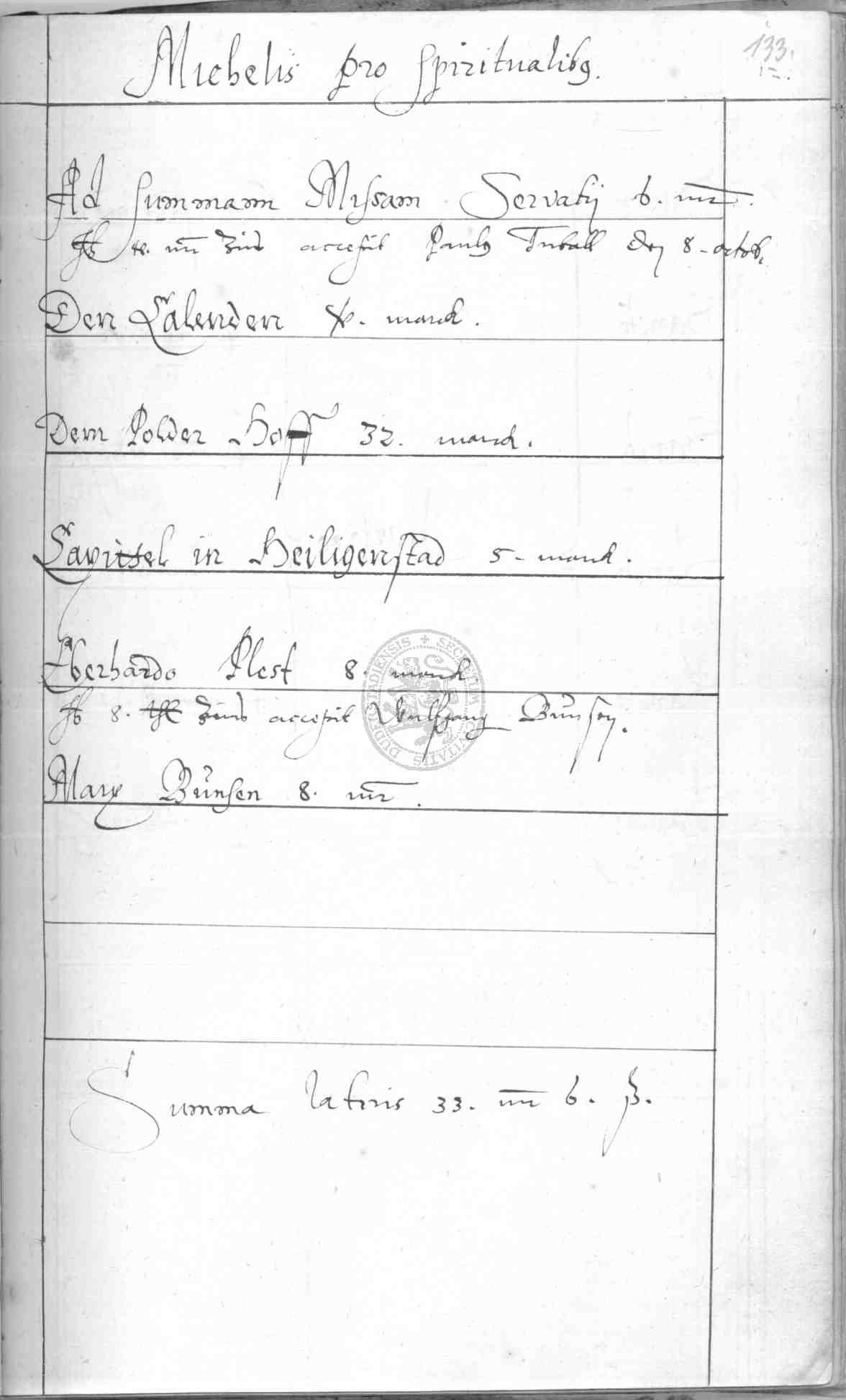 | Rubrum: | Michaelis pro spiritualibus |