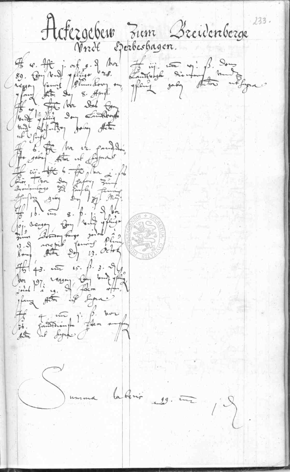 | Rubrum: | ackergebeu zum Breidenberge und Herbeshagen |