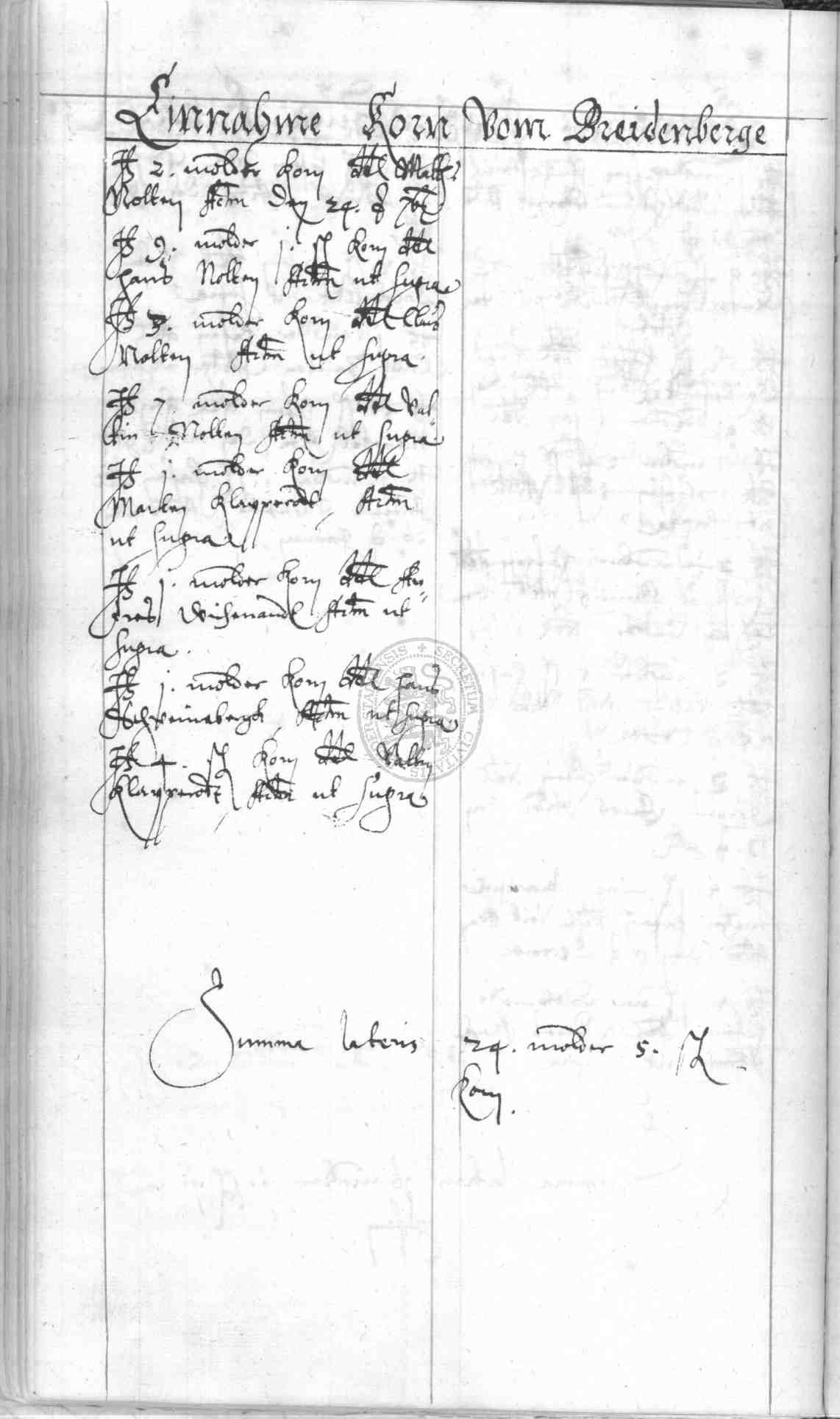 | Rubrum: | einnahme korn vom Breidenberge |