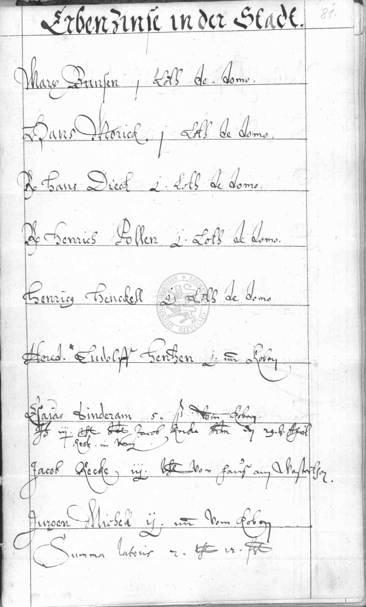 | Rubrum: | erbenzinse in der stadt |