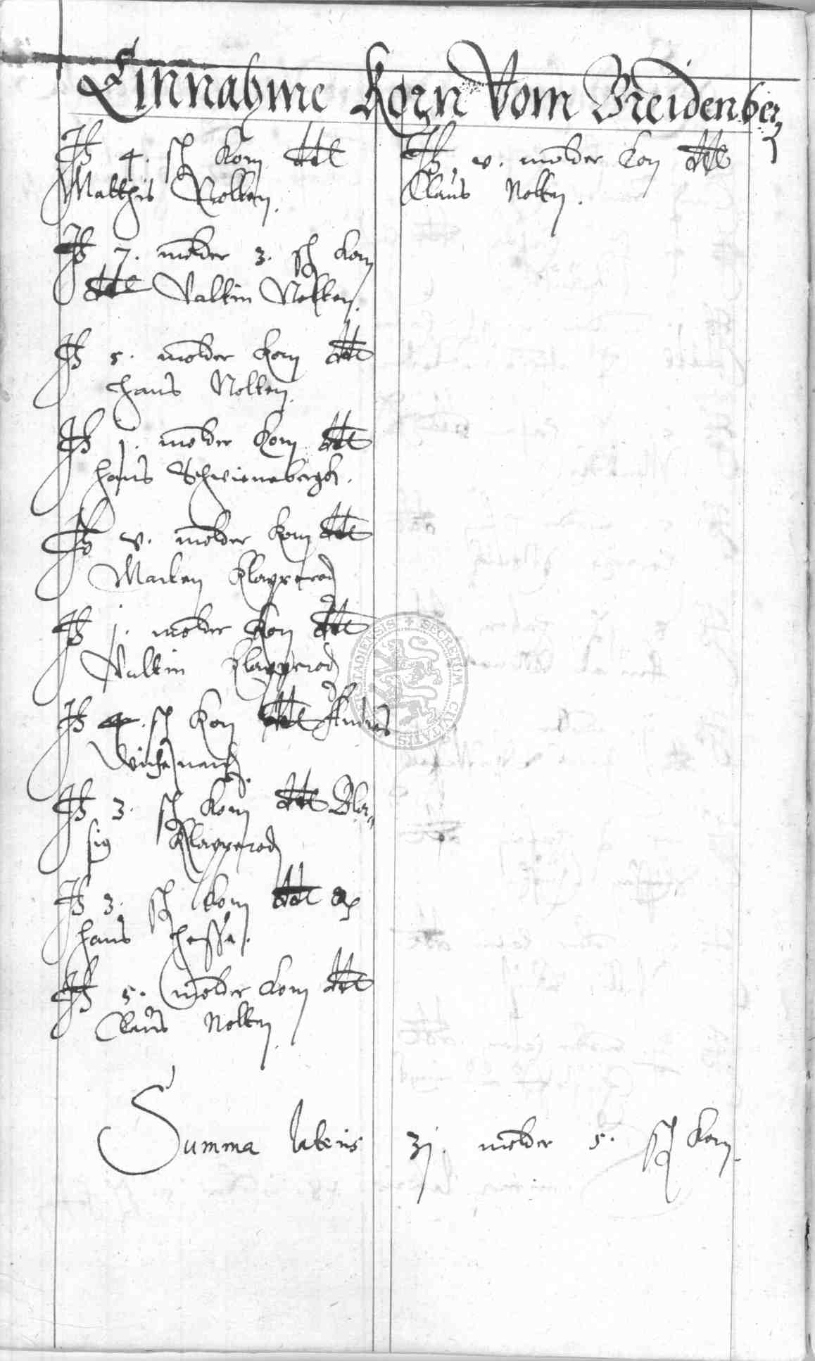 | Rubrum: | einnahme korn vom Breidenberge |