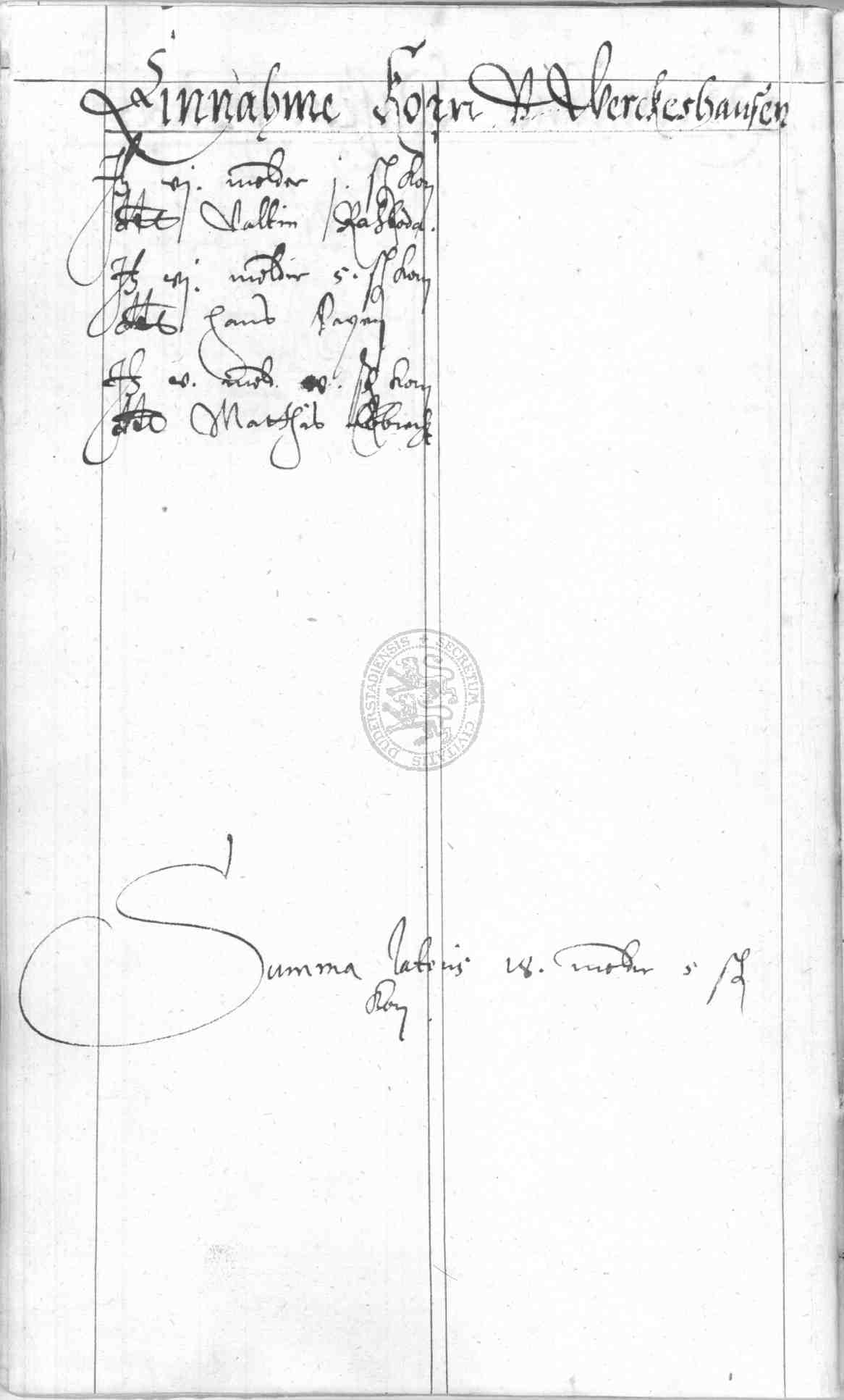 | Rubrum: | einnahme korn von Werckeshusen |