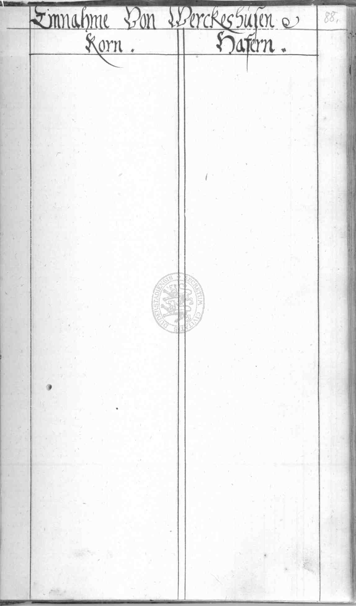 | Rubrum: | einnahme von Werckeshusen korn hafern |