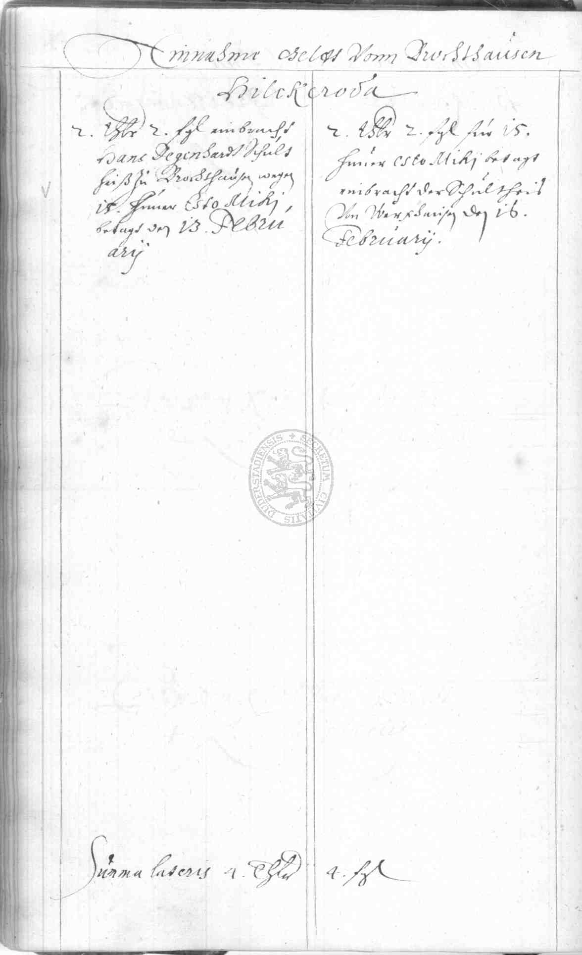 | Rubrum: | einnahme geld von Brochthausen Hilckeroda |