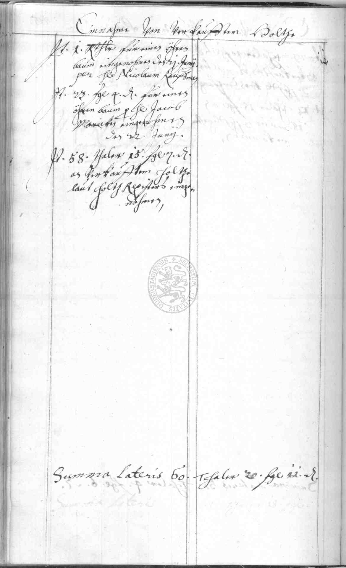 | Rubrum: | einnahme von verkauftem holtze |