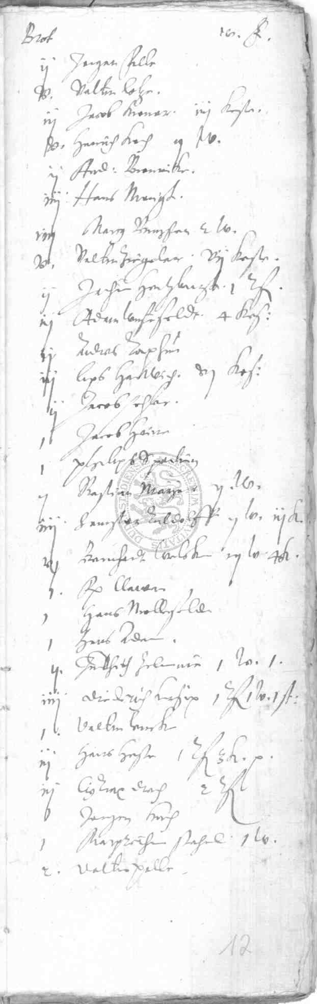 Rep 10 - Lieferungen von Bürgern an den Rat an Brot, Fleisch, Käse (Vorschoss) |