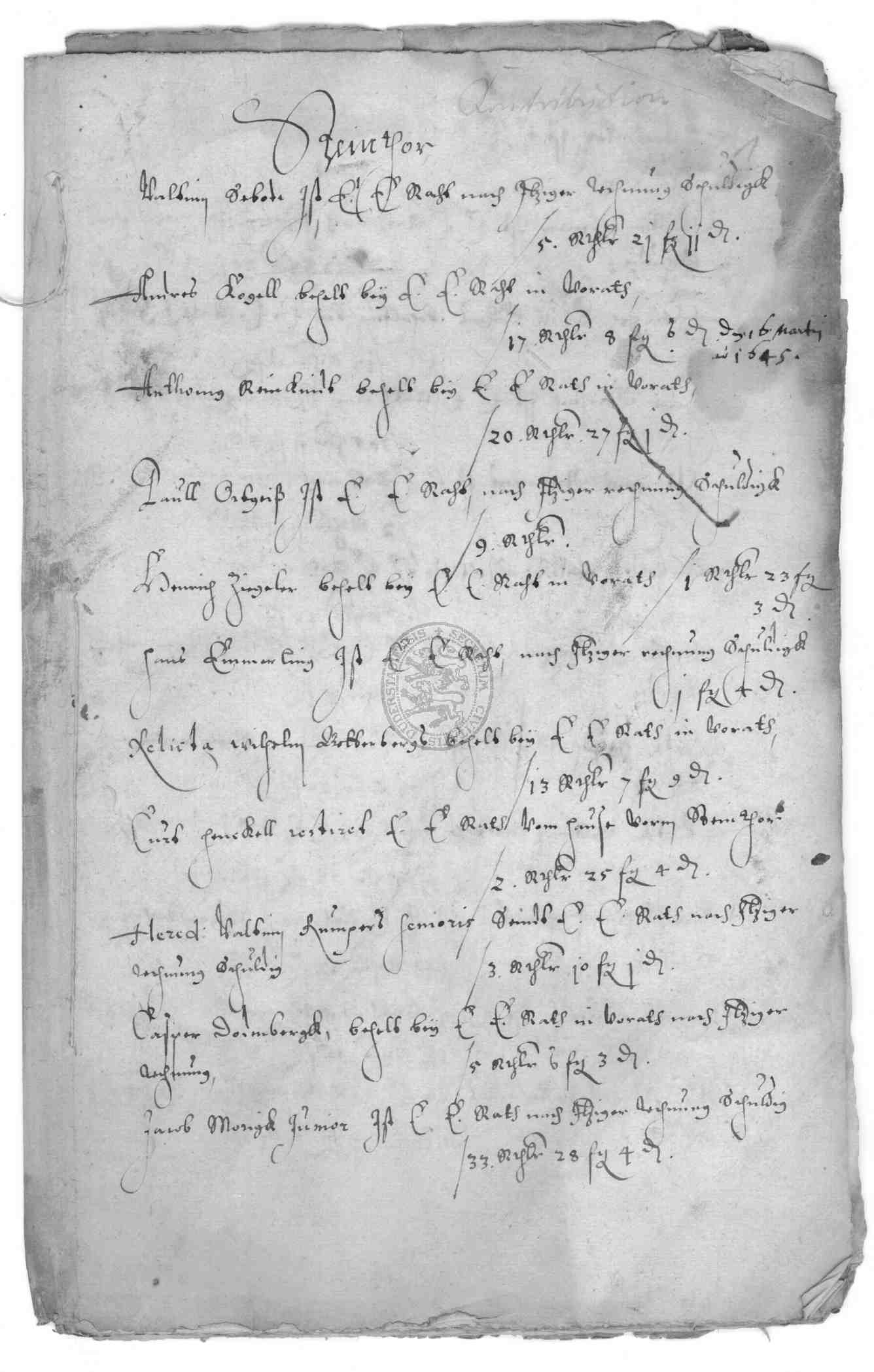 | Titel: | Rückständige Kontributionen |