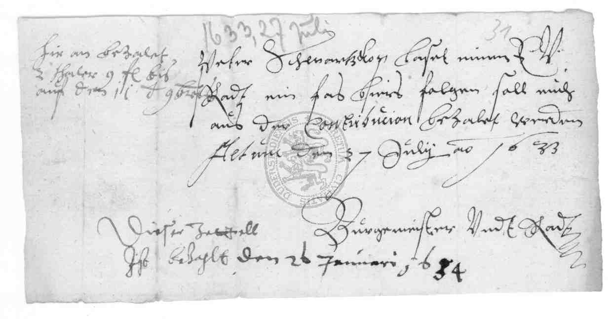 | Titel: | Abrechnungen und Quittungen über Einquartierungen und geleistete Kontribution sowie Obligationsscheine über zu zahlende Summen |