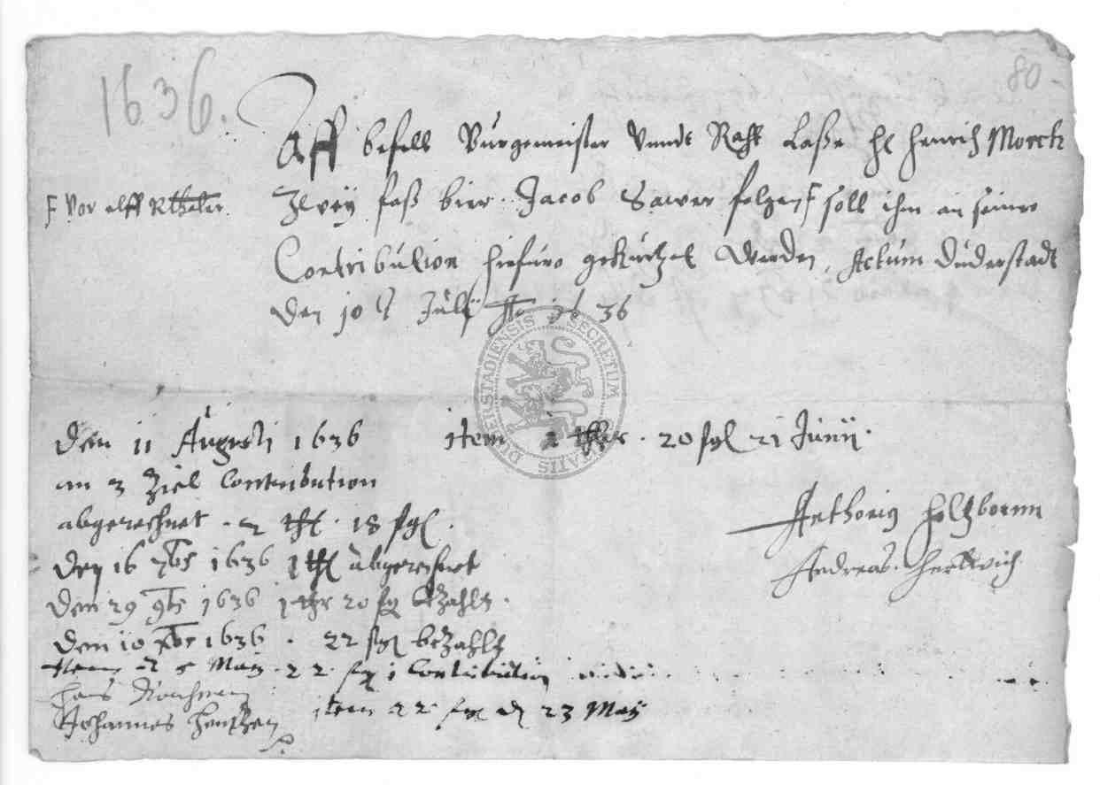 | Titel: | Abrechnungen und Quittungen über Einquartierungen und geleistete Kontribution sowie Obligationsscheine über zu zahlende Summen |