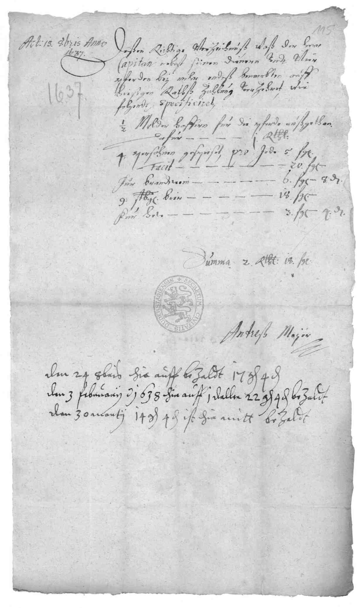 | Titel: | Abrechnungen und Quittungen über Einquartierungen und geleistete Kontribution sowie Obligationsscheine über zu zahlende Summen |
