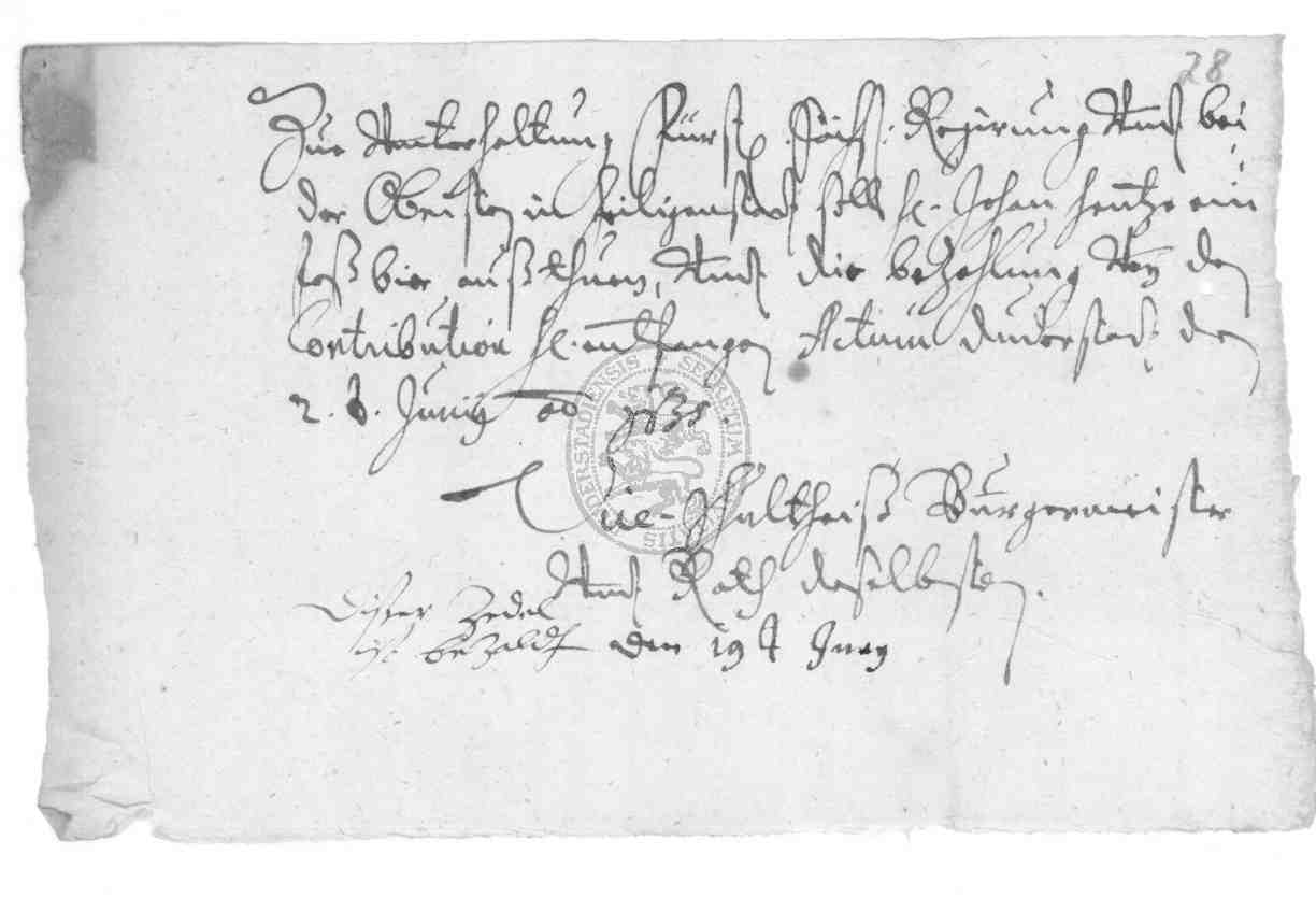 | Titel: | Quittungen über geleistete Kontribution, Leistung von Aufwandsentschädigung und Bescheinigungen über Kürzung der Kontribution, desgleichen Belege über Zahlung von Stabs- und Sevisgeldern sowie Weimarischer Accordgelder |