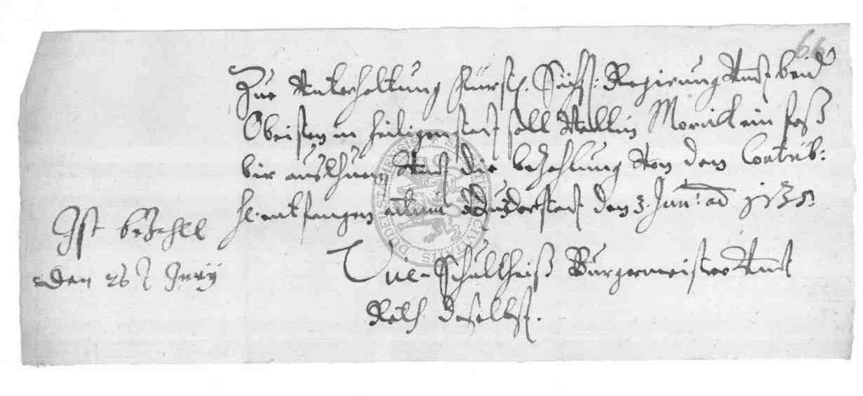 | Titel: | Quittungen über geleistete Kontribution, Leistung von Aufwandsentschädigung und Bescheinigungen über Kürzung der Kontribution, desgleichen Belege über Zahlung von Stabs- und Sevisgeldern sowie Weimarischer Accordgelder |