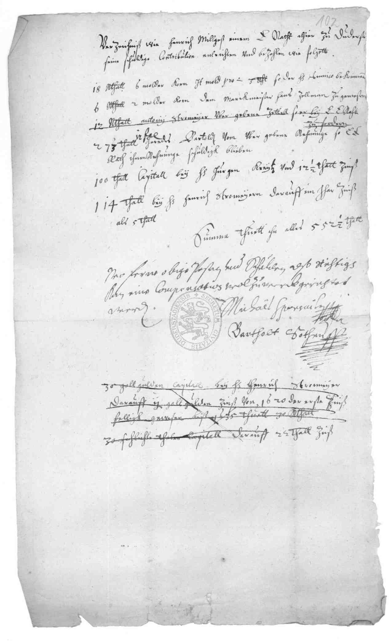| Titel: | Quittungen über geleistete Kontribution, Leistung von Aufwandsentschädigung und Bescheinigungen über Kürzung der Kontribution, desgleichen Belege über Zahlung von Stabs- und Sevisgeldern sowie Weimarischer Accordgelder |