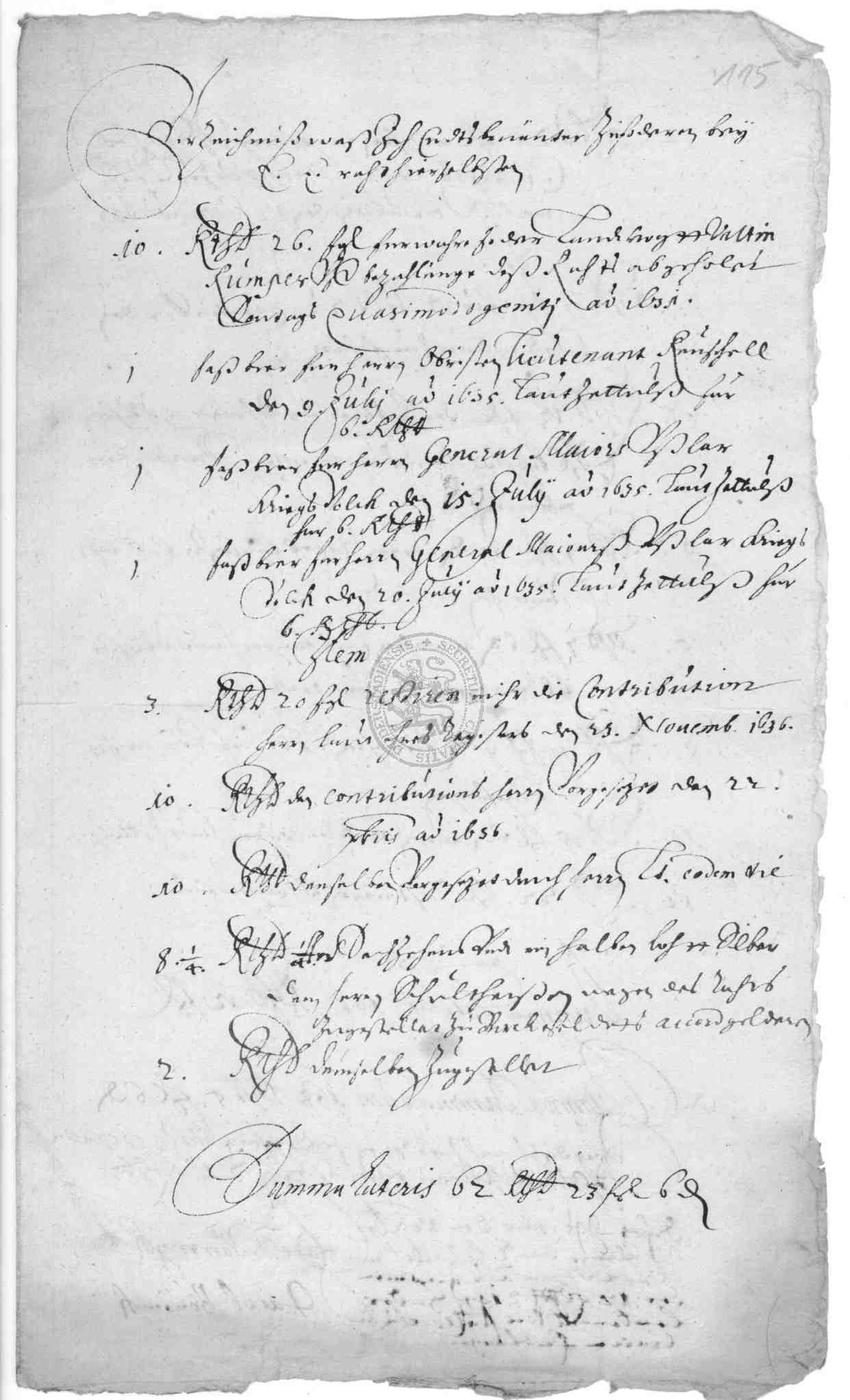 | Titel: | Quittungen über geleistete Kontribution, Leistung von Aufwandsentschädigung und Bescheinigungen über Kürzung der Kontribution, desgleichen Belege über Zahlung von Stabs- und Sevisgeldern sowie Weimarischer Accordgelder |