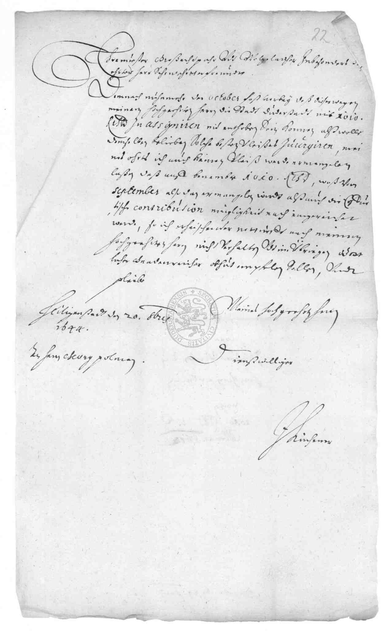 | Titel: | Zahlung von Kontribution durch die Stadt Duderstadt und die Stände des Eichsfeldes |