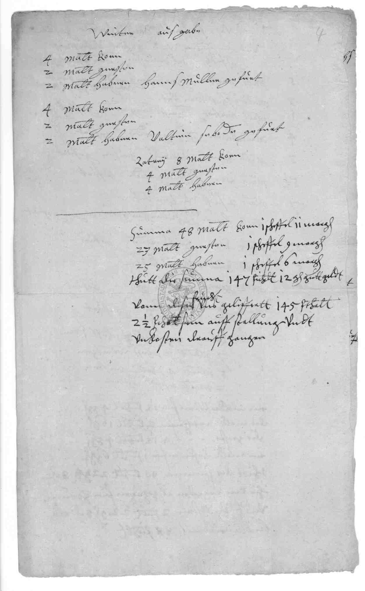 | Titel: | Lieferung von Fourage für den General Königsmark |